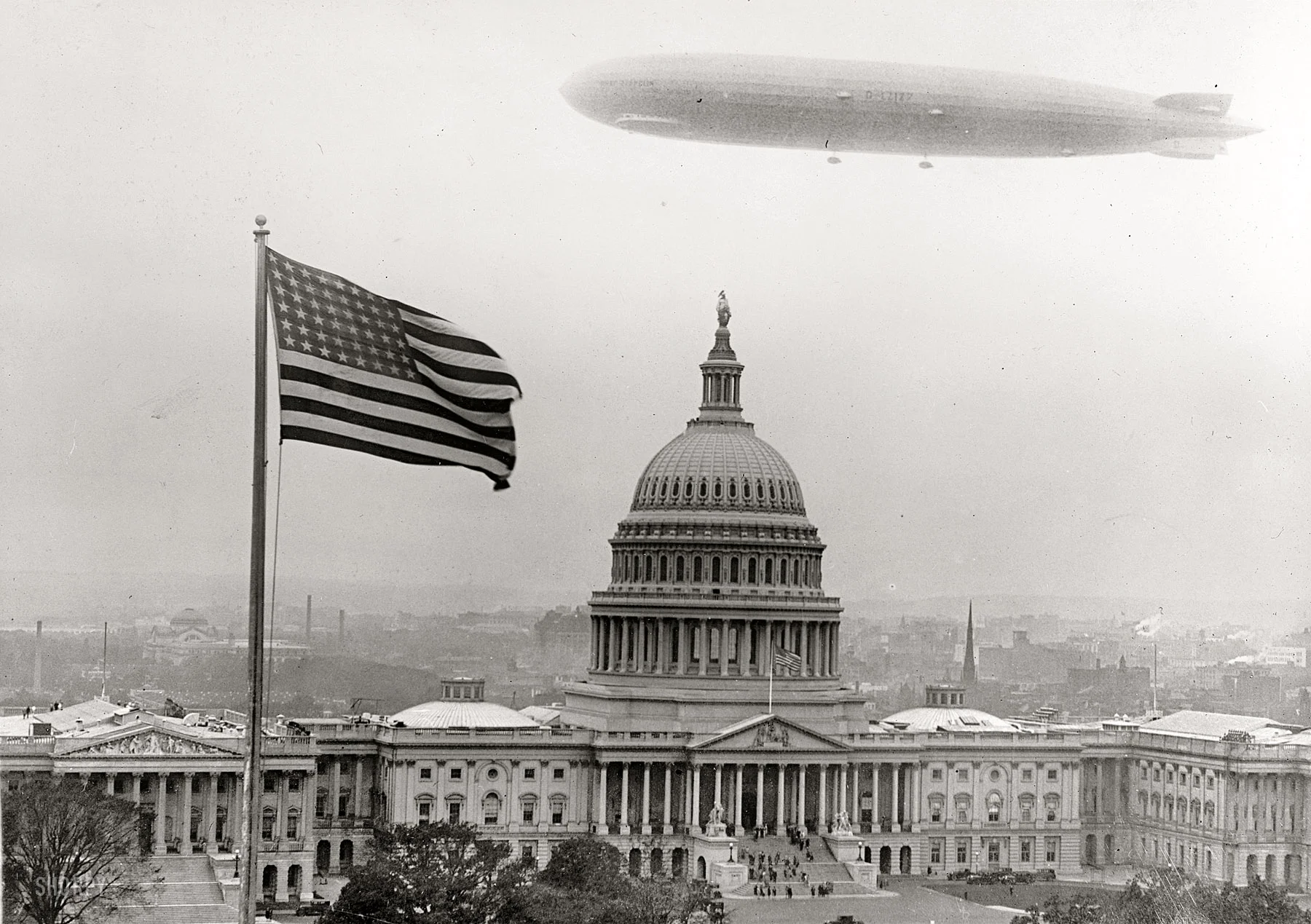 I have a picture above my desk at work of the Arsenal v Huddersfield Town FA Cup final match at Wembley stadium in 1930. Arsenal won 2-0, if you care. It was their first trophy. Again, if you care. Above them flew the Graf Zeppelin, floating above the pitch for a short while before disappearing again. The people on board could see the game clearly, and a few people bothered to look up. Not all of them even noticed what was hanging above them. Hanging.