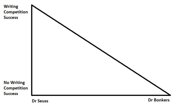 And we can put some limits on it now. Because the assumption is, Dr Bonkers won't have as much success as Dr Seuss, so we can draw a triangle (finally we get to the triangle!).